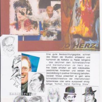 Action Hand Painting / Karikaturist / Schnellzeichner Freuen Sie sich auf eine One-Man-Show, die in allen Varianten mit ausgewählter Musik unterlegt und dynamisch dargeboten wird.Bei "Action Hand Painting Show" verschmelzen die mit den bloßen Händen …